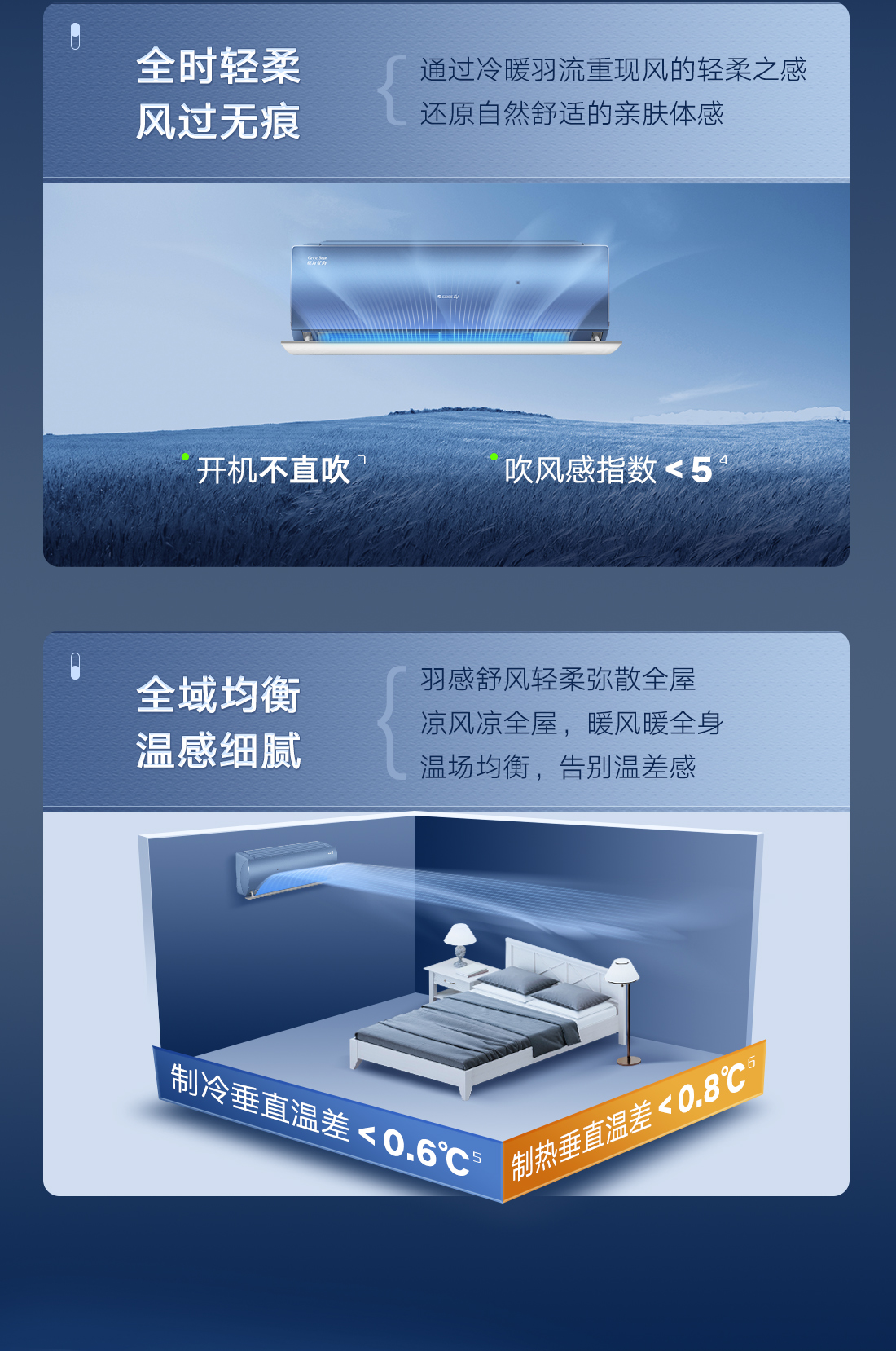 格力睡眠空調(diào)“星”升級(jí),風(fēng)似柔羽,細(xì)膩親膚,帶來(lái)風(fēng)與溫的雙重升級(jí)。置身于柔、衡、舒、凈的氛圍中,全身自然舒放,享受沉浸睡眠。