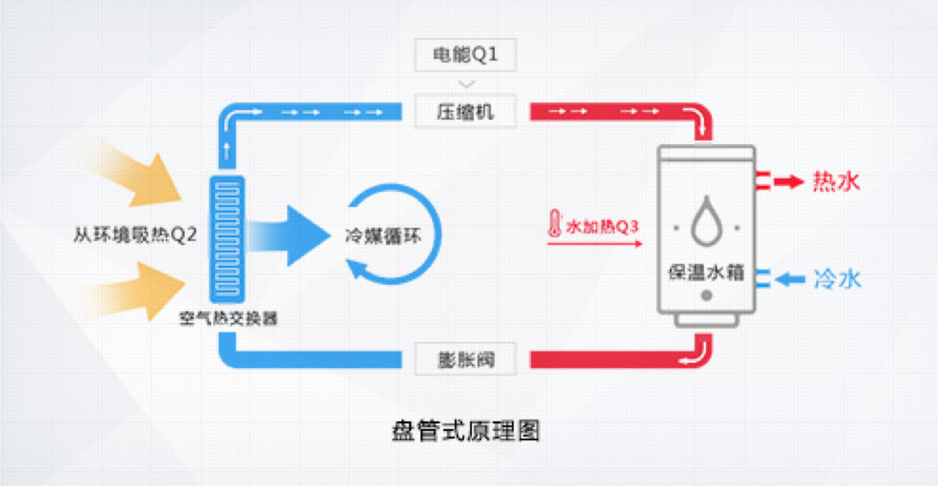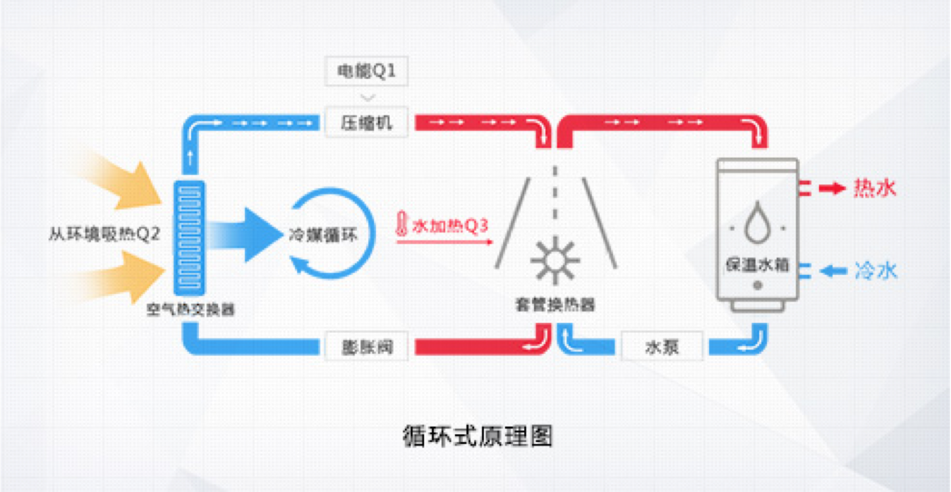 格力空氣能熱水器,傳承空調(diào)核心科技,以消耗一部分電能為補(bǔ)償,通過(guò)熱力循環(huán),從周?chē)h(huán)境的低品位能源(空氣源)取得熱量,通過(guò)壓縮機(jī)將其輸送至冷凝器,釋放給水箱內(nèi)的水將其加熱。它的工作原理與空調(diào)制熱時(shí)的原理相類(lèi)似,只是空調(diào)是 從自然環(huán)境中吸取熱量,供給室內(nèi)空氣,而空氣能熱水器是以這部分熱量加熱生活熱水,其能效比是電熱水器的4倍,是燃?xì)鉄崴鞯?倍,是太陽(yáng)能熱水器的近2倍,是一種新型的高效、節(jié)能、環(huán)保的熱水器產(chǎn)品。一度電的付出,4倍熱量的收獲!